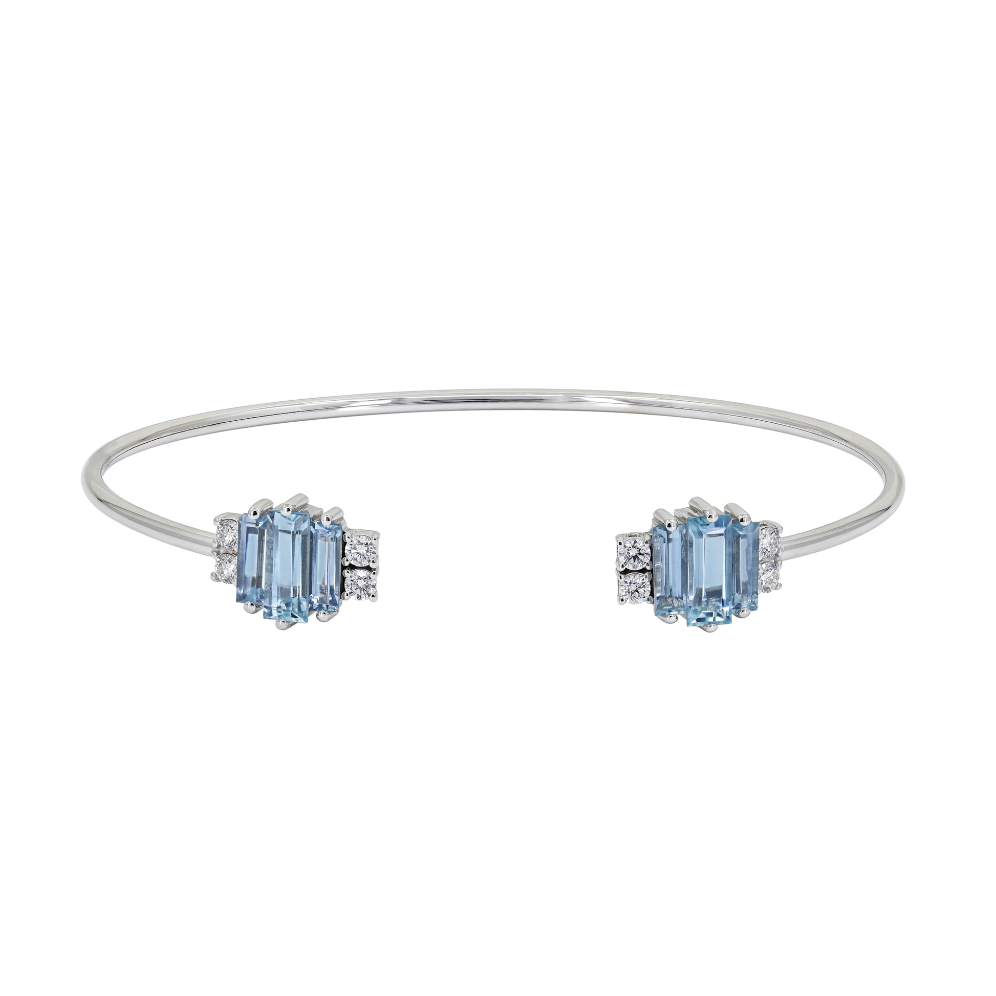 Features stunning aquamarine gemstones, accented by diamonds on the sides, inspired by the crystal-clear, vibrant blue seas of Brazil, particularly in the region of Bahia. Known for its unmatched azure waters, Bahia’s coastline serves as the perfect muse for this piece, capturing the serene beauty and purity of the sea. This bracelet embodies the calming energy and dazzling hues of Brazil's iconic oceans, bringing the essence of the sea to life in a timeless design. The Bracelet it is flexible ajusting to any wrist size.