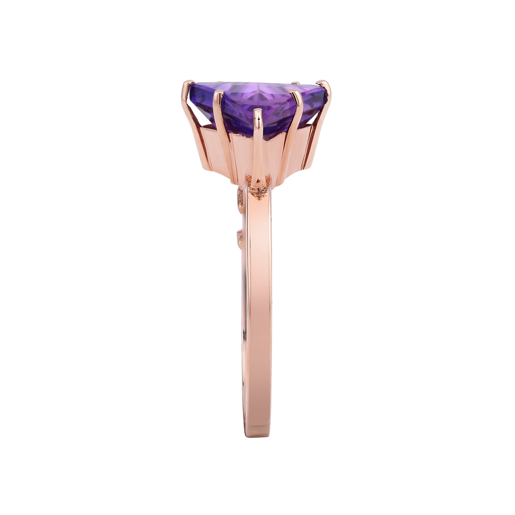 Modern and refined, this ring is centered around a striking inverted 2.71 ct natural Amethyst, capturing the collection's signature elegance with a twist. Framed by two baguette-cut diamonds and a pair of round brilliant accents, the composition brings architectural balance and radiant light.