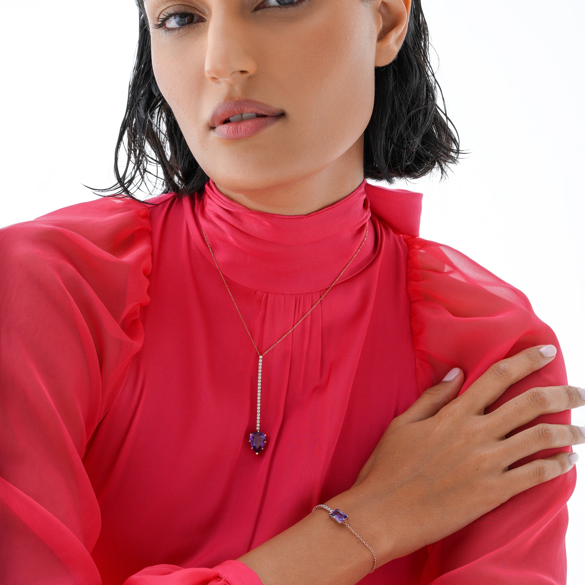 A tribute to graceful form and meaningful connection, this piece is inspired by the natural elegance of Brazil and the flowing silhouettes that define the Linéa Collection. Set with vibrant amethysts sourced from Cristalina City, Tauana Cambraia’s cherished childhood haven, this necklace reflects both beauty and memory. A cascade of natural diamonds complements the rich purple hues, evoking the gentle movement of a waterfall. Timeless yet deeply personal, it embodies the artistry, emotion, and refined luxury that define the Linéa Collection.