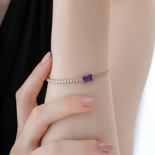 Linéa Amethyst and Diamond Bracelet in Rose Gold
